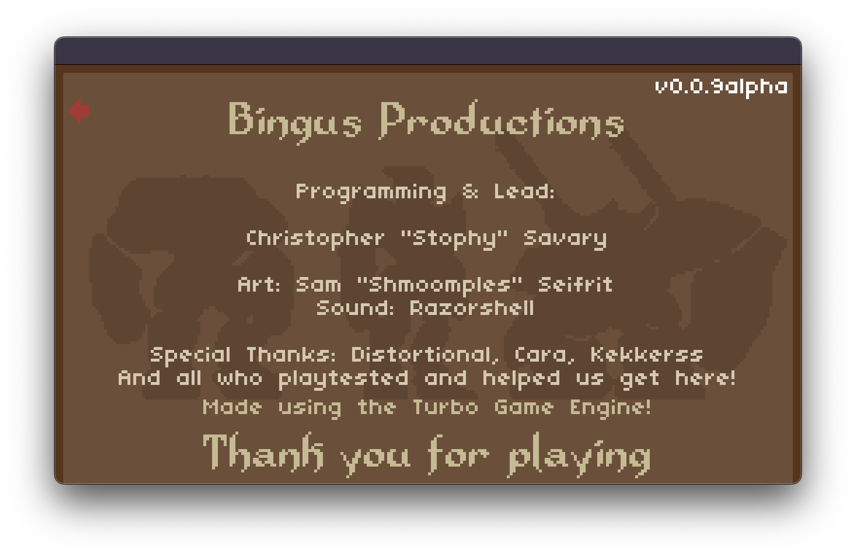 If you enjoyed your time playing it would be a blast if you filled this out! It's our feedback form and will help Bingus Productions make even greater games in the future!