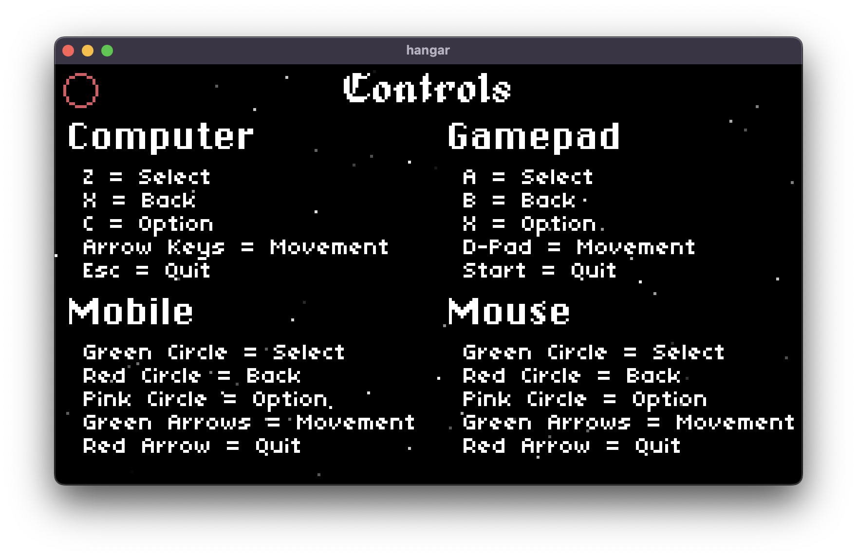Hangar supports mouse, touch, and gamepad controls. It uses emulator based controls:
